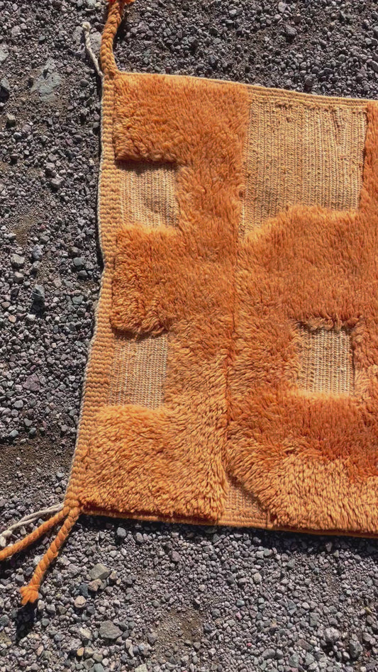 Handmade Moroccan HOPE Rug – Bright Orange Tufted Wool Art Carpet – Inspirational Berber Decor size 120x70 cm