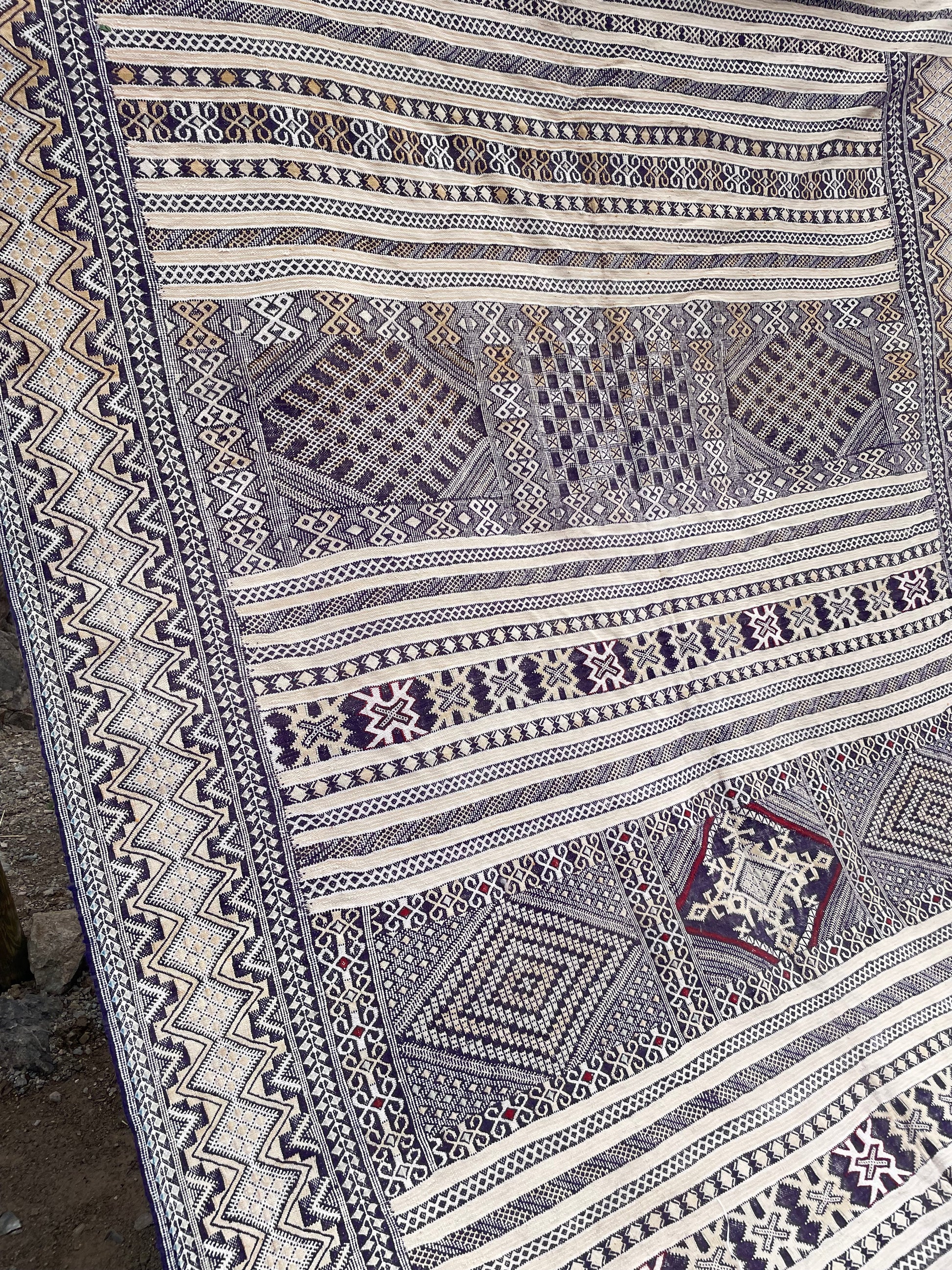 This flat-weave rug is crafted from 100% natural wool, featuring traditional Berber geometric patterns passed down through generations. Each Kilim rug is one of a kind, making it a perfect statement piece for living rooms, dining areas, bedrooms, or creative spaces.