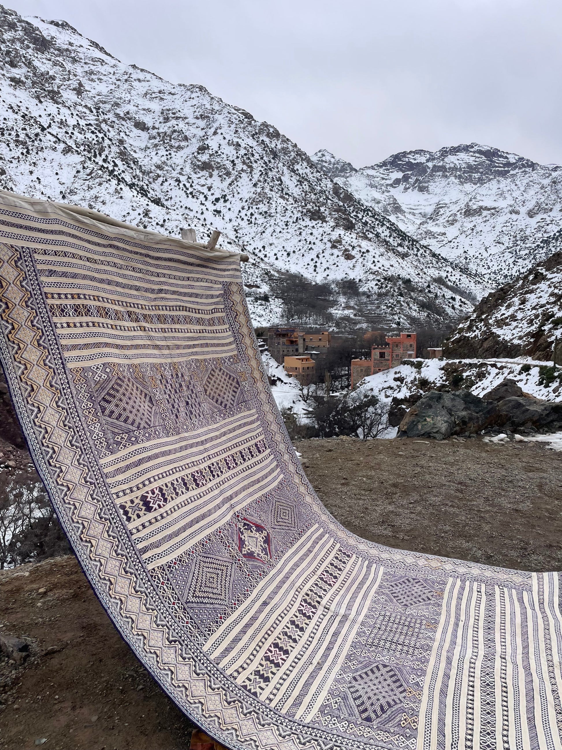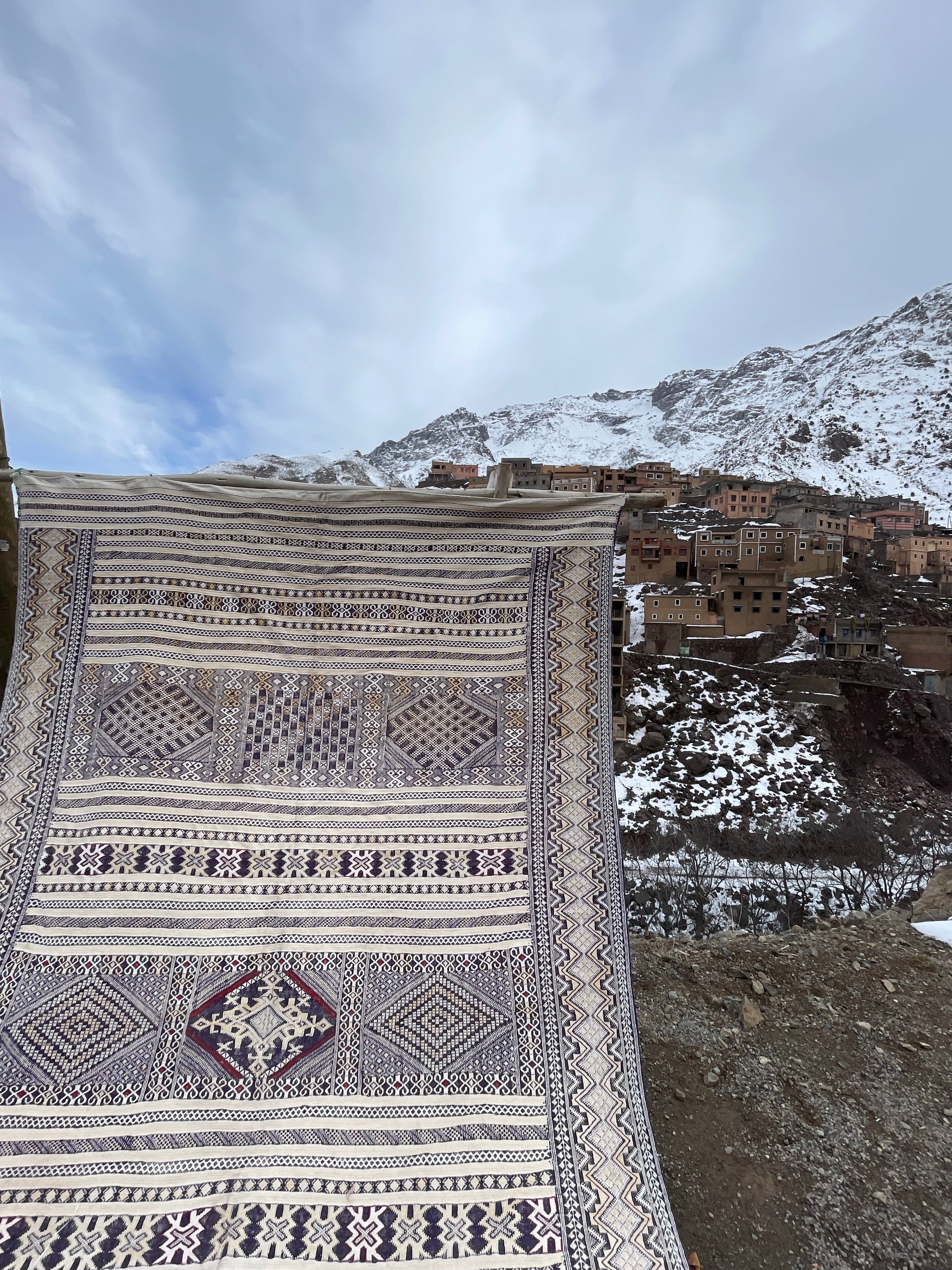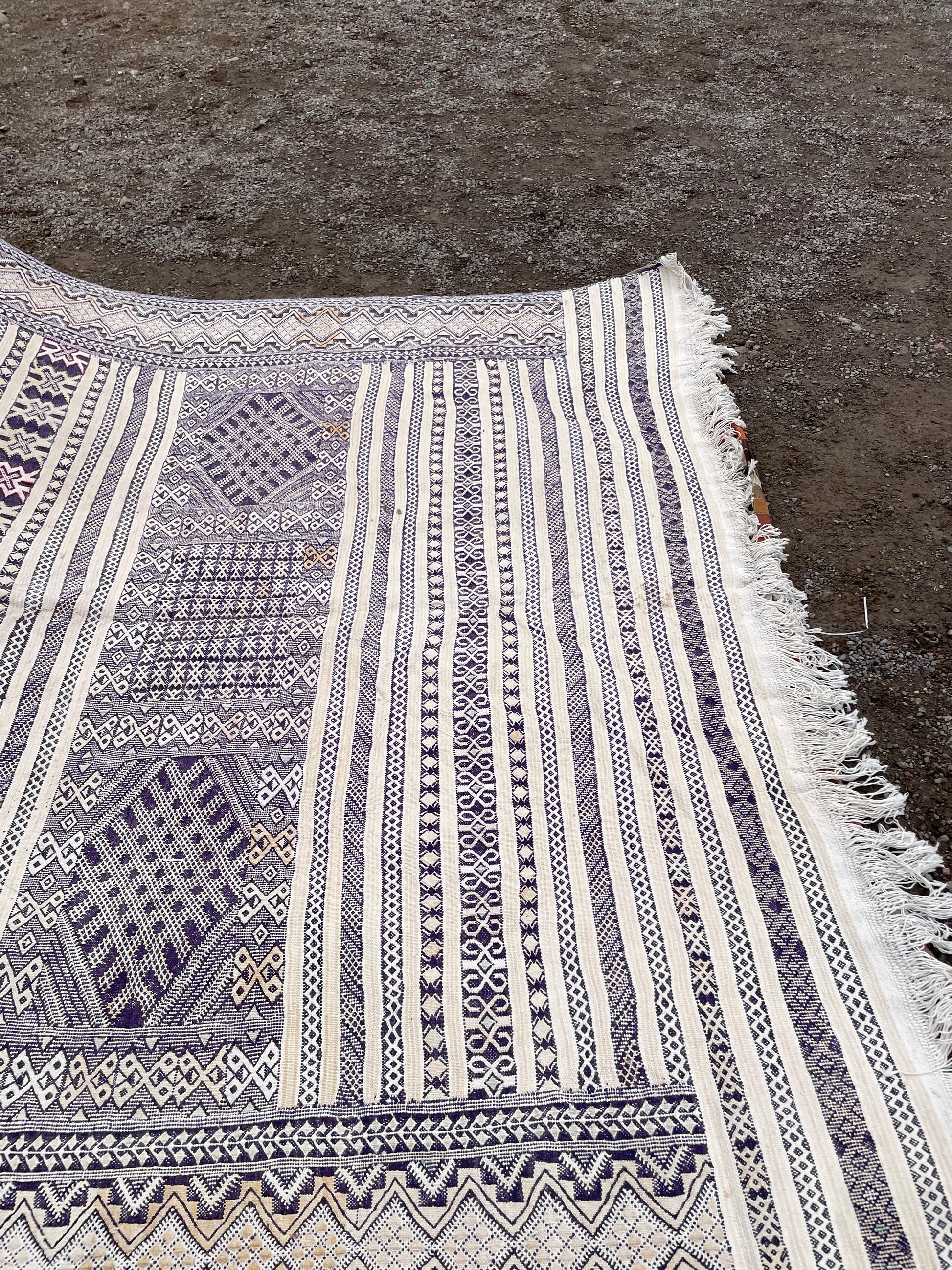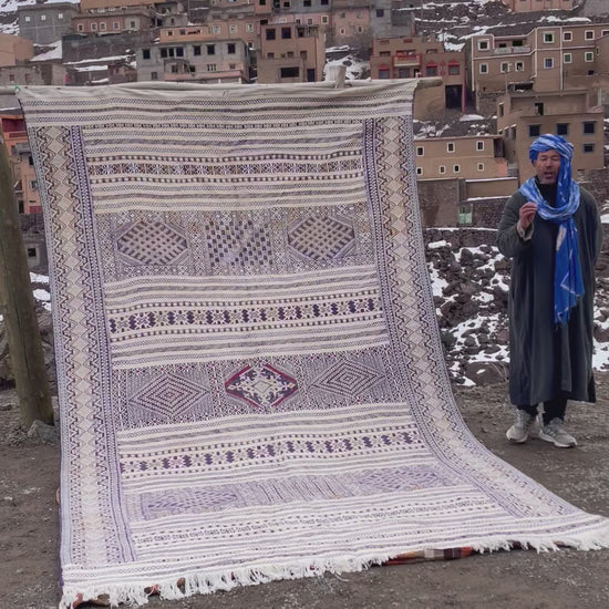 Bring timeless character and authentic craftsmanship into your home with this handwoven Moroccan Kilim rug, made by skilled artisans in the Atlas Mountains of Morocco.
