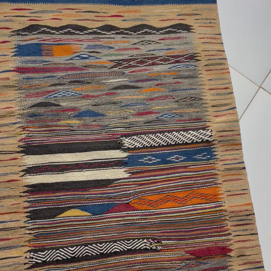 Bring artistry and heritage into your home with this handwoven Picasso Berber Kilim. Rich in cultural symbolism and crafted with precision, this rug blends modern abstract art with ancient Berber craftsmanship. A perfect décor piece for bohemian, modern, or minimalist interiors.
