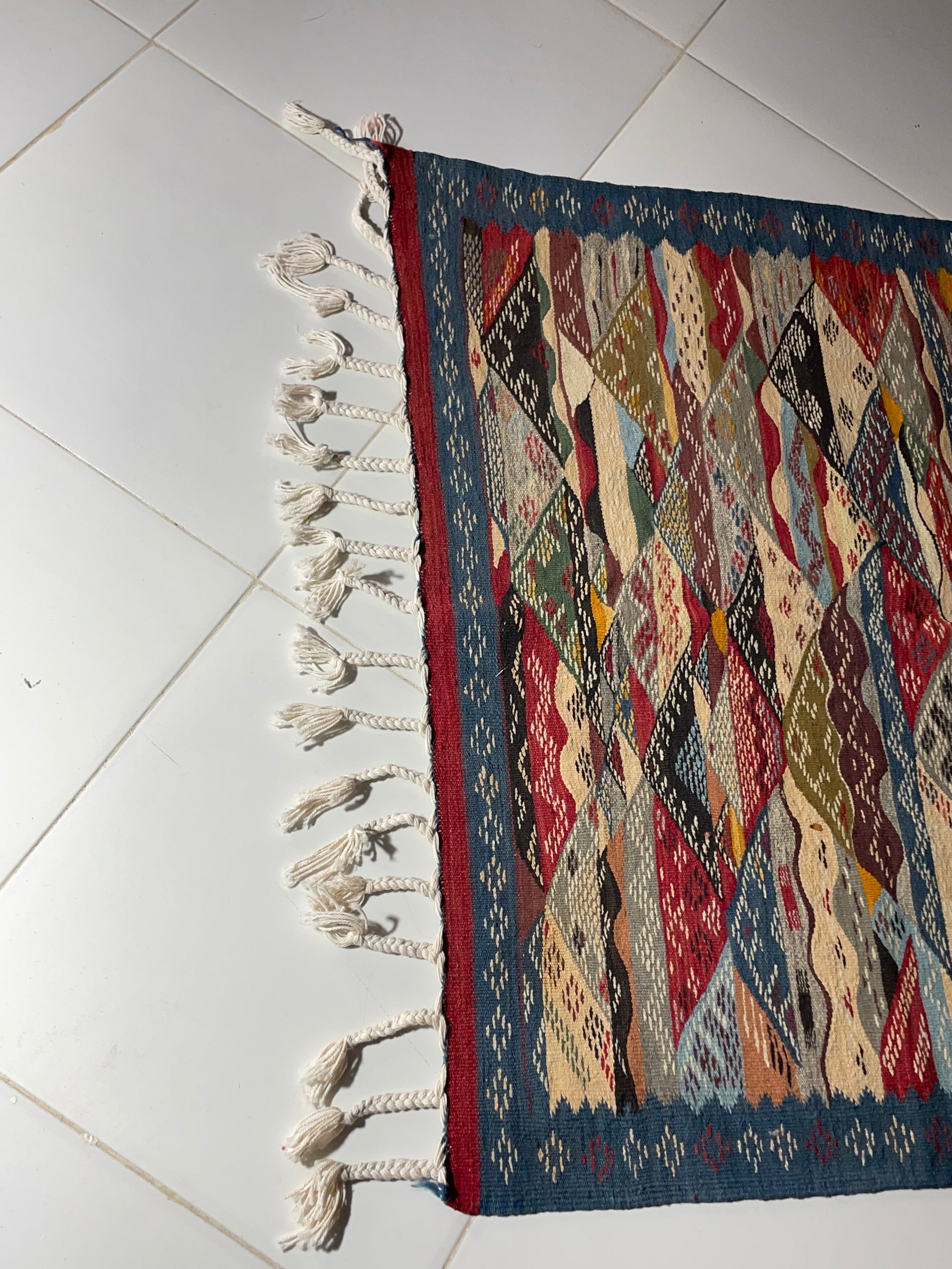 Add a vibrant artistic touch to your interior with this stunning Picasso-style wool rug. Featuring rich textures and an eye-catching abstract pattern, this 100x100 cm (3.3x3.3 ft) piece is ideal for enhancing both modern and traditional interiors. The reversible design increases versatility, while the braided fringe highlights its handmade craftsmanship. Perfect for small spaces, accent areas, or layered rug styling, this piece brings life, style, and comfort to your home.