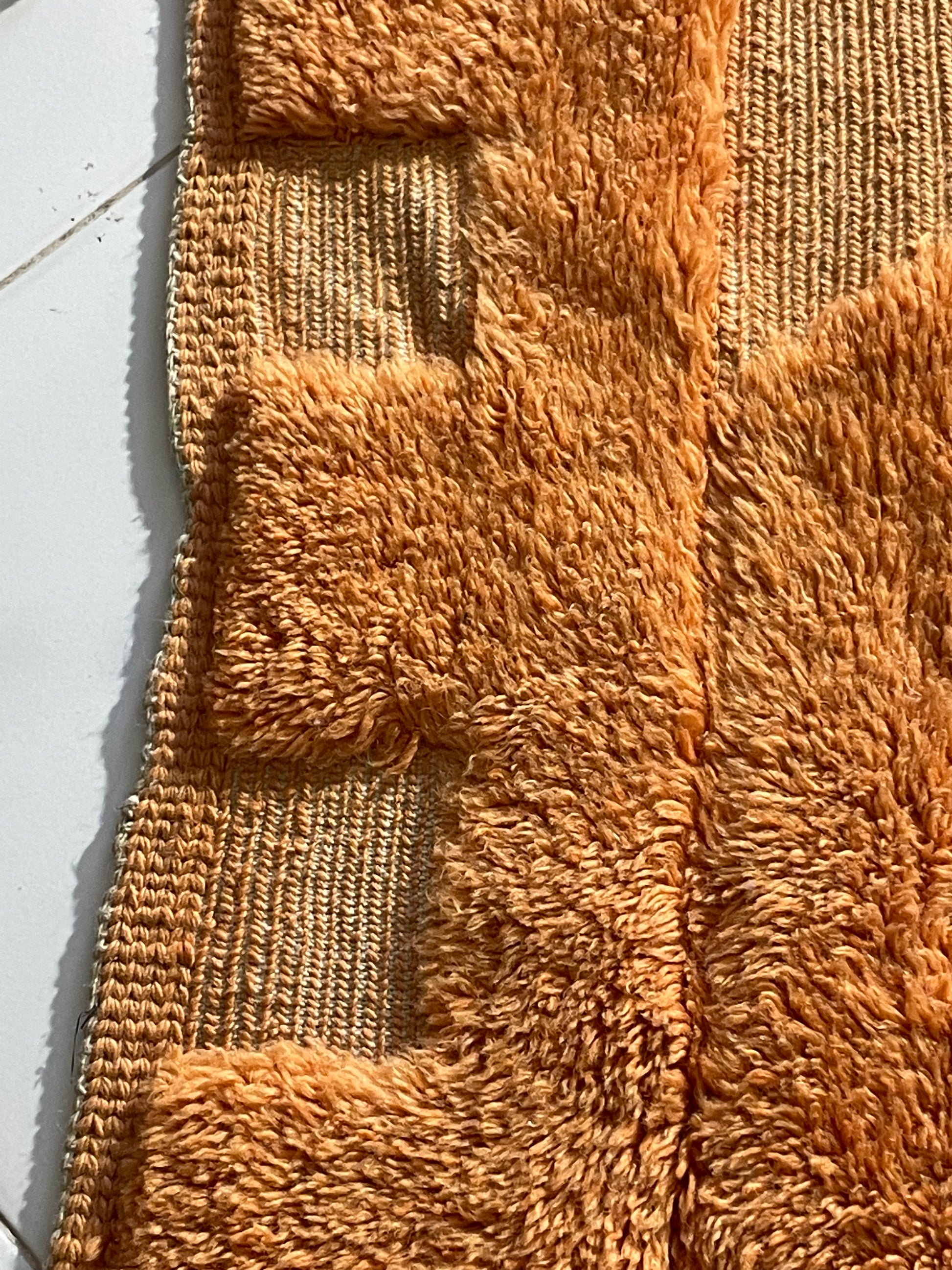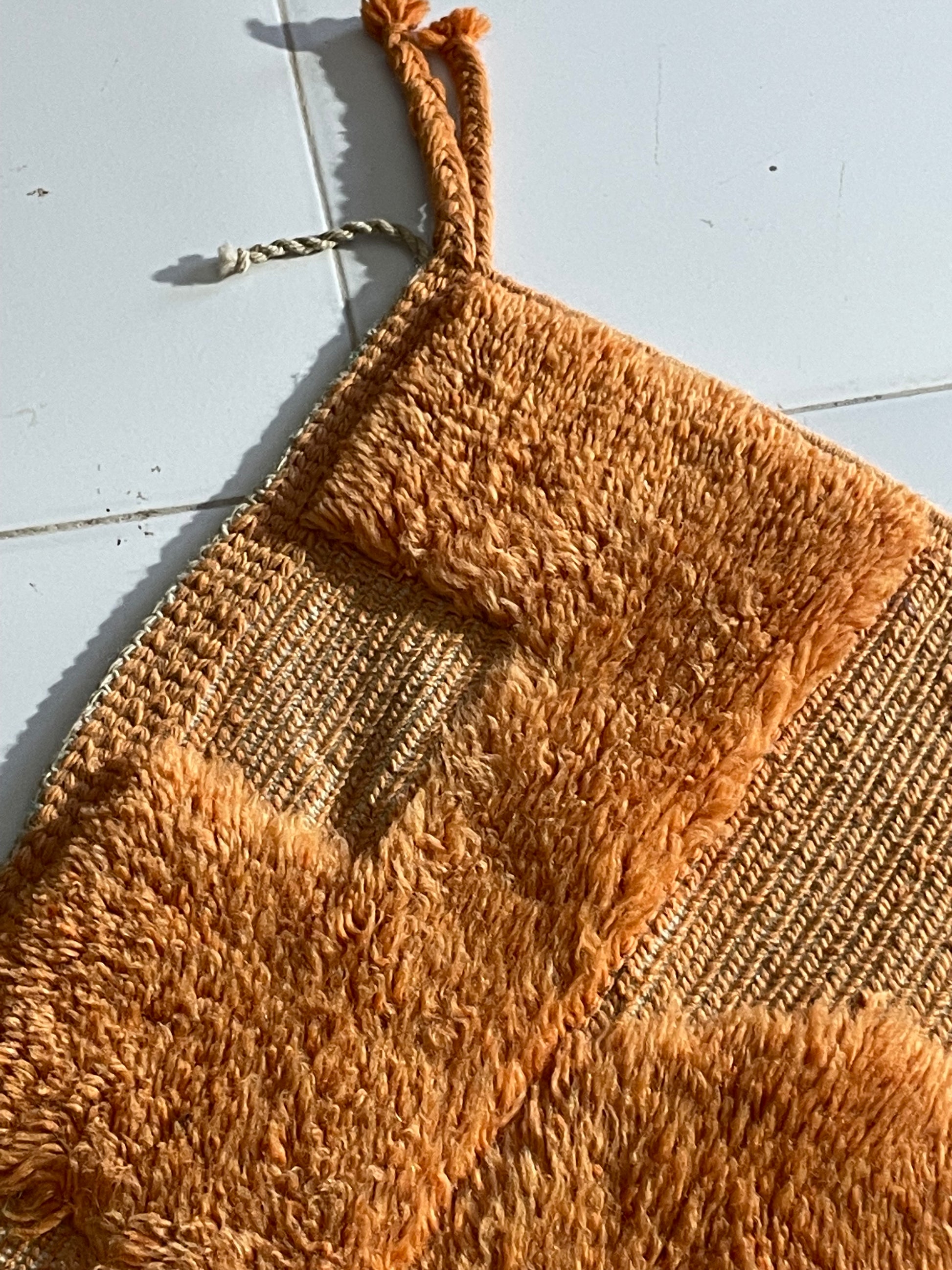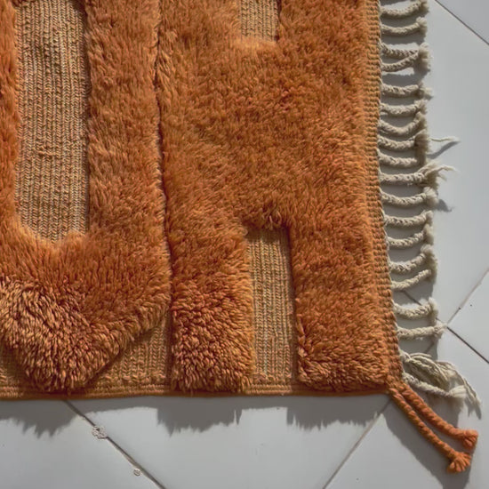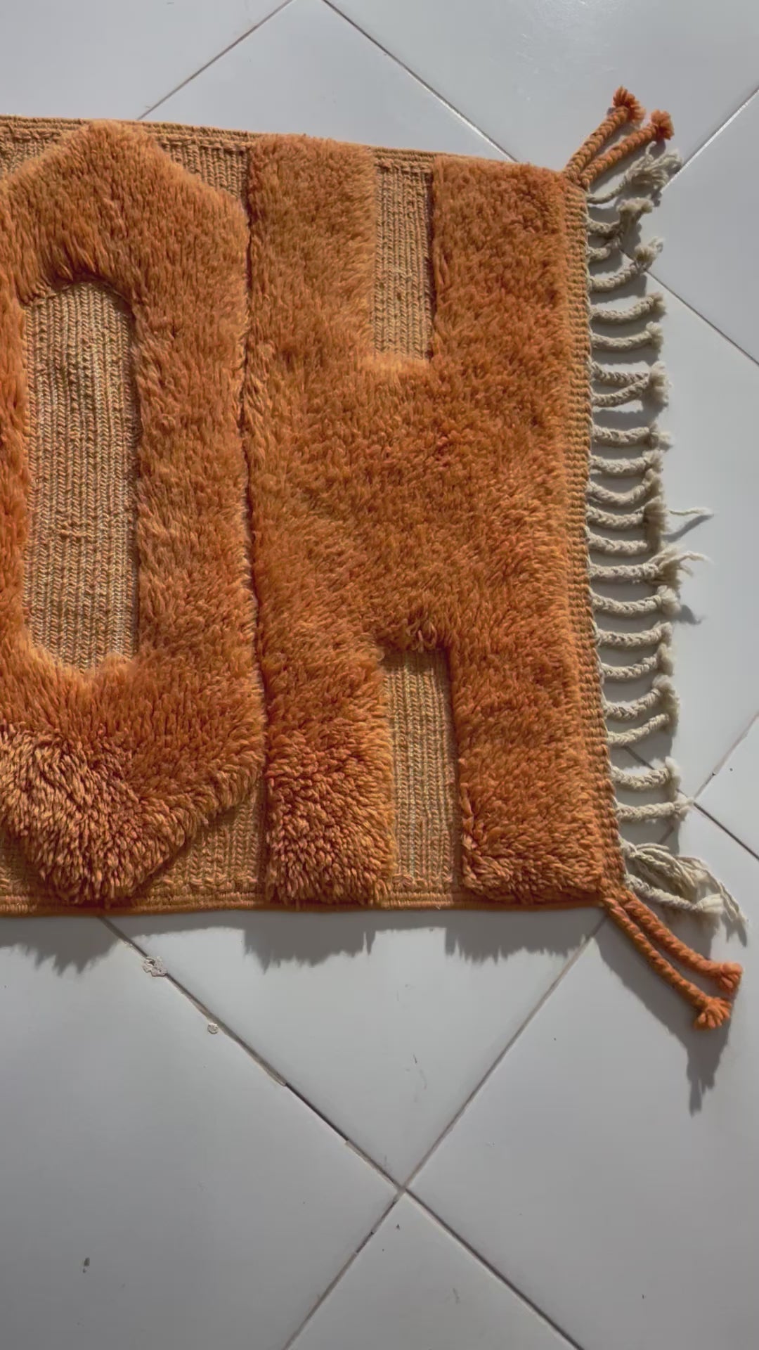 Bring warmth, color, and positivity into your home with this handmade Moroccan HOPE rug, crafted by skilled Berber artisans in the Atlas Mountains. This unique orange tufted wool carpet features bold lettering and a soft, plush texture, making it perfect as a statement piece for living rooms, bedrooms, studios, or creative spaces.