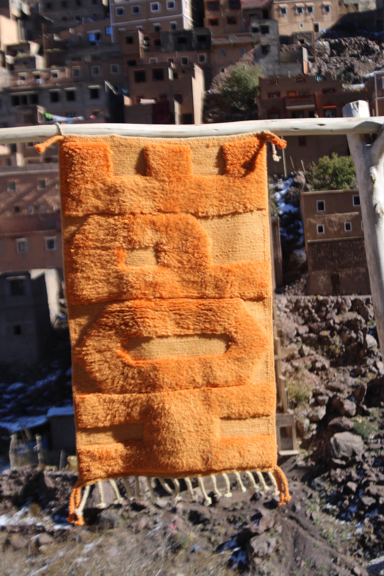 Handmade Moroccan HOPE Rug – Bright Orange Tufted Wool Art Carpet – Inspirational Berber Decor size 120x70 cm