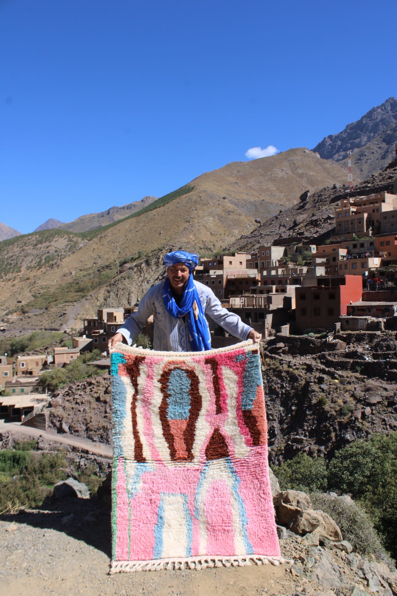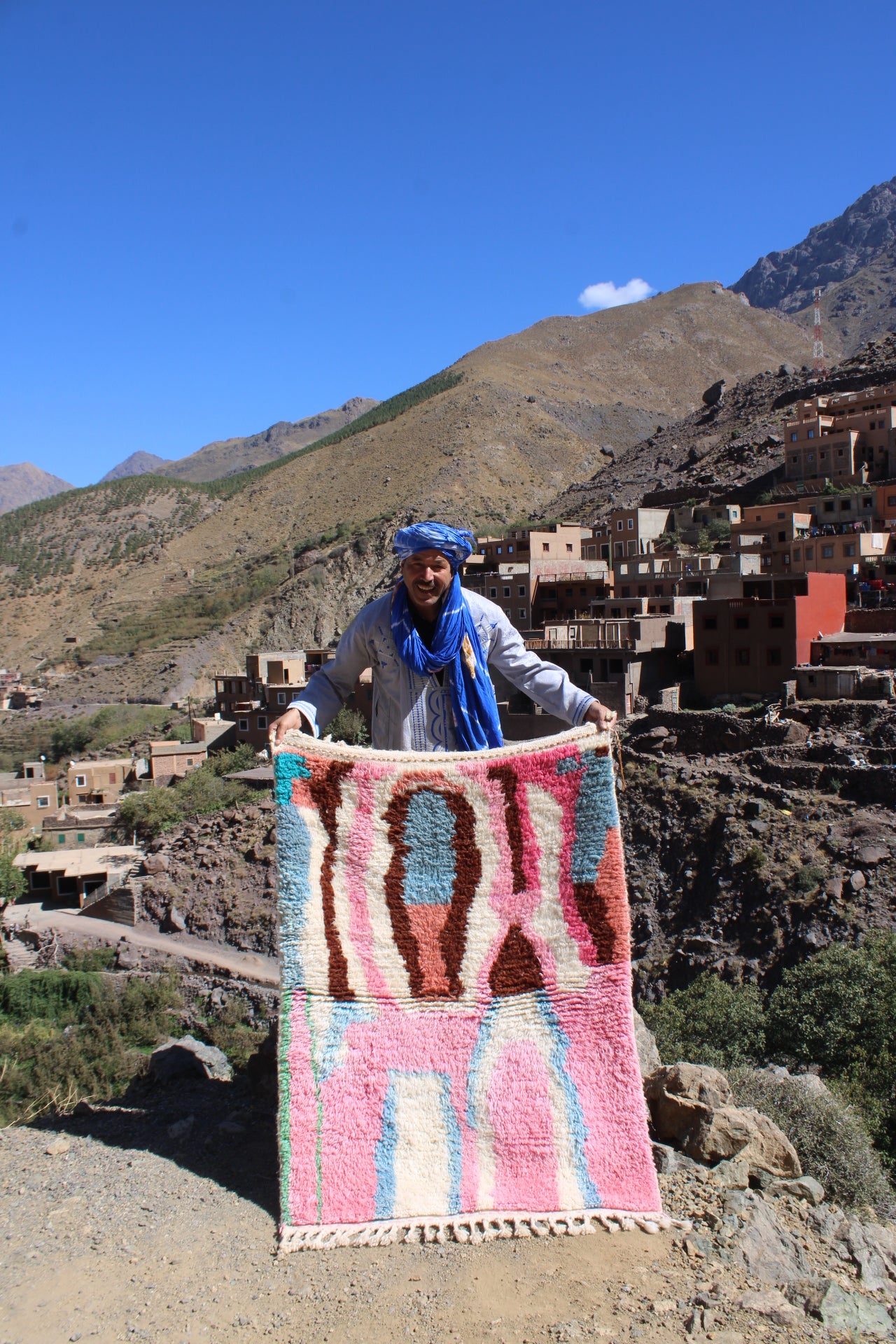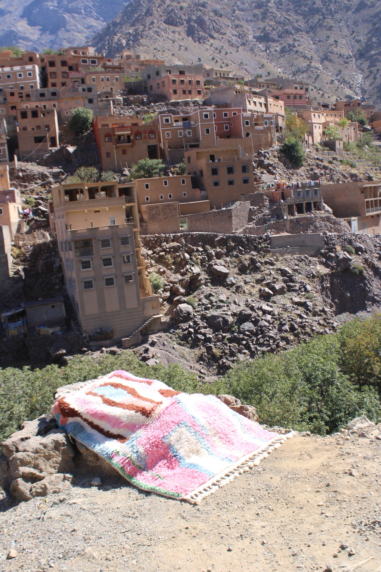 A traditional Moroccan Azilal rug handwoven from pure wool. Its unique tribal patterns and warm tones add character and depth to any interior. The perfect size for accenting small areas or layering with larger rugs.